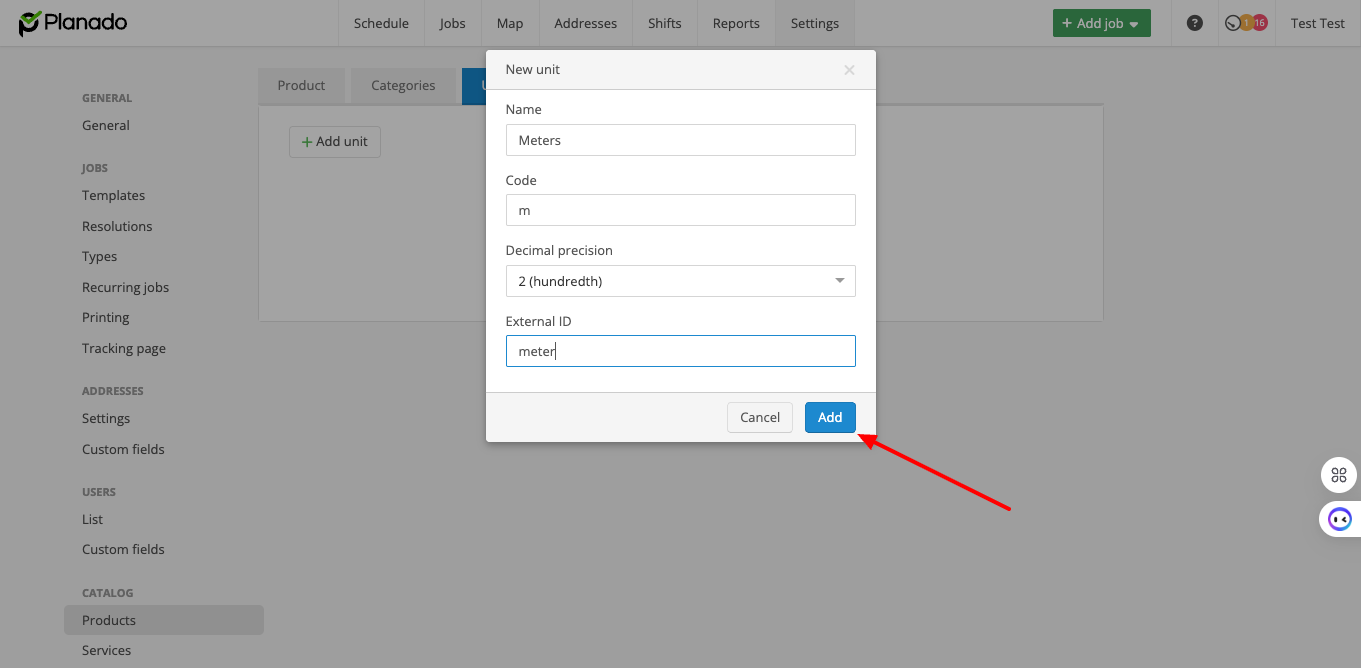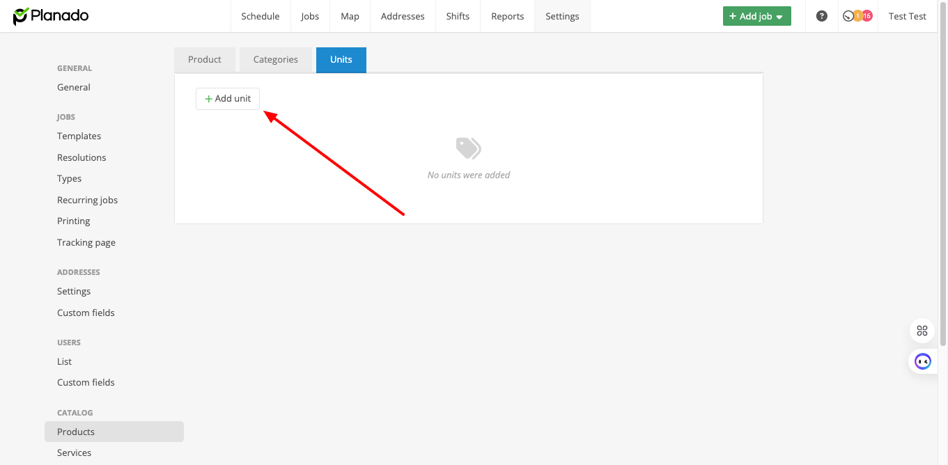 To add a new unit, go to the Settings → Products tab and open the Units tab. Click the Add unit button.
