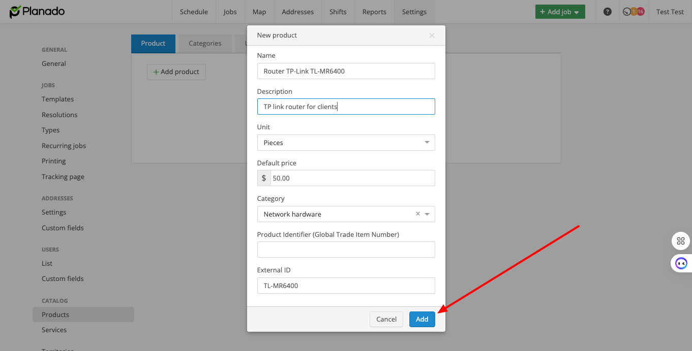 Once products are added to Planado, they become accessible in the mobile app. Since products are linked to services, ensure your job includes services associated with the products for proper functionality.