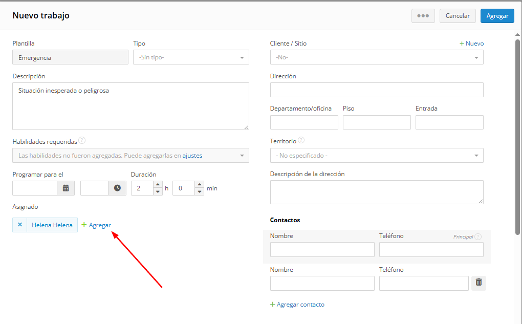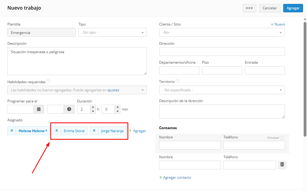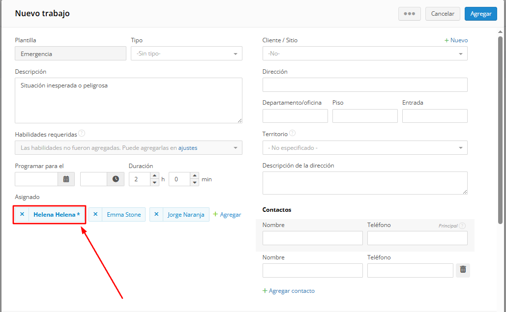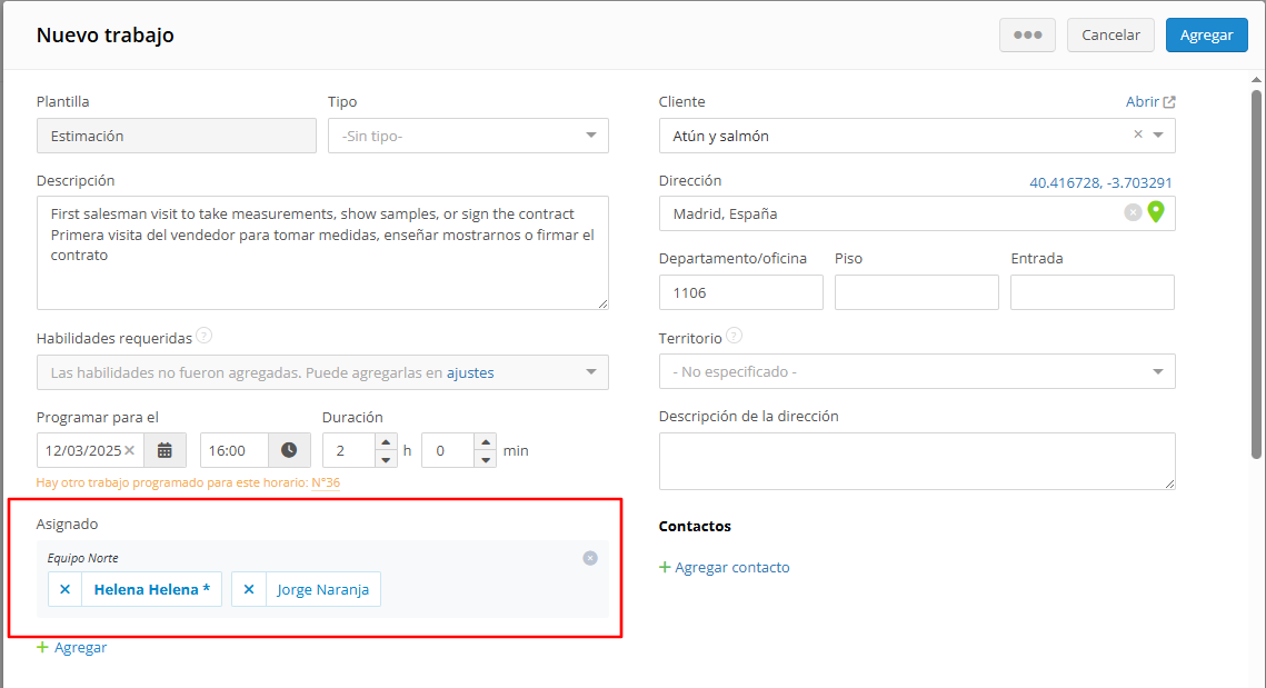 Se añadirá otro empleado al trabajo. De esta manera, se pueden añadir varios asignados al trabajo.