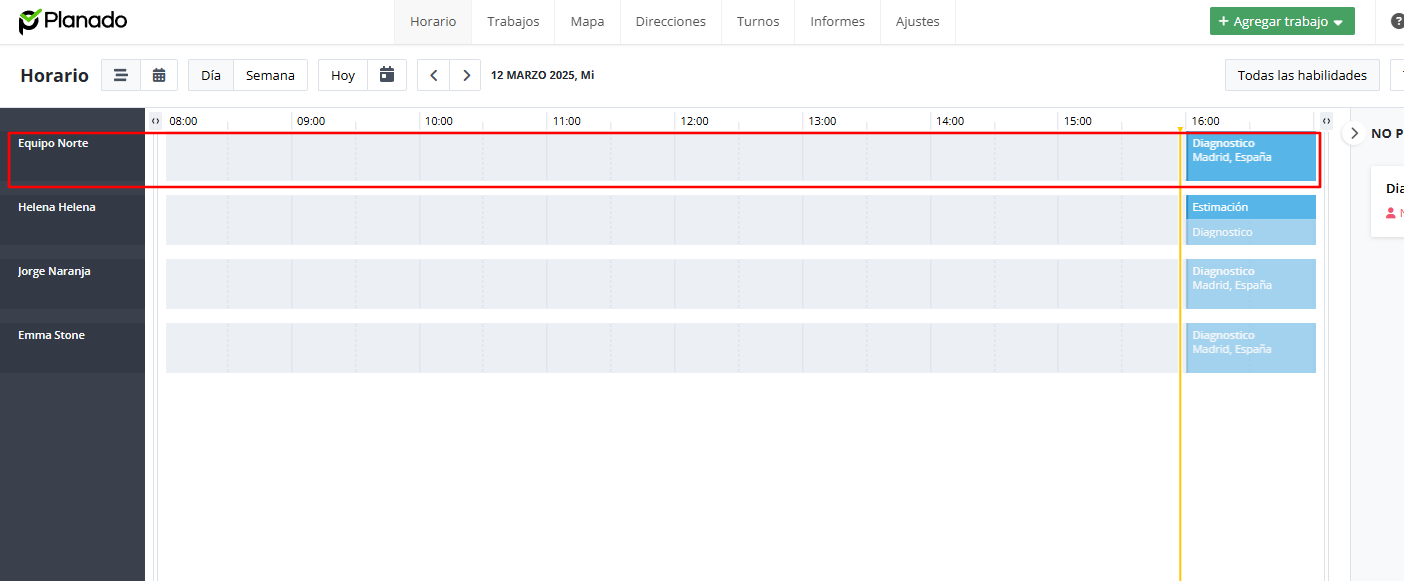 Trabajo asignado a un equipo en el Horario del día