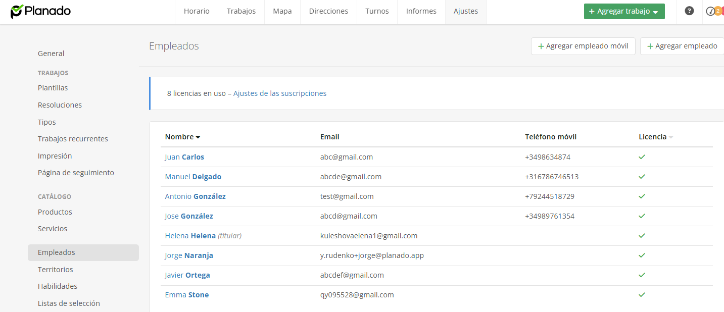 Abre la página Ajustes → Empleados. Selecciona el empleado que necesitas desde la lista.